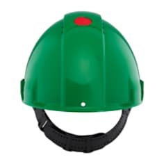 The 3M G3000CUV-GP is an industrial safety helmet designed for harsh environments (e.g., construction, forestry). Its UV-stabilized ABS shell and short peak improve visibility, while the Uvicator sensor monitors sun exposure, fading to signal replacement . The pinlock suspension and plastic sweatband ensure a customizable fit, and the ventilation system reduces heat buildup.