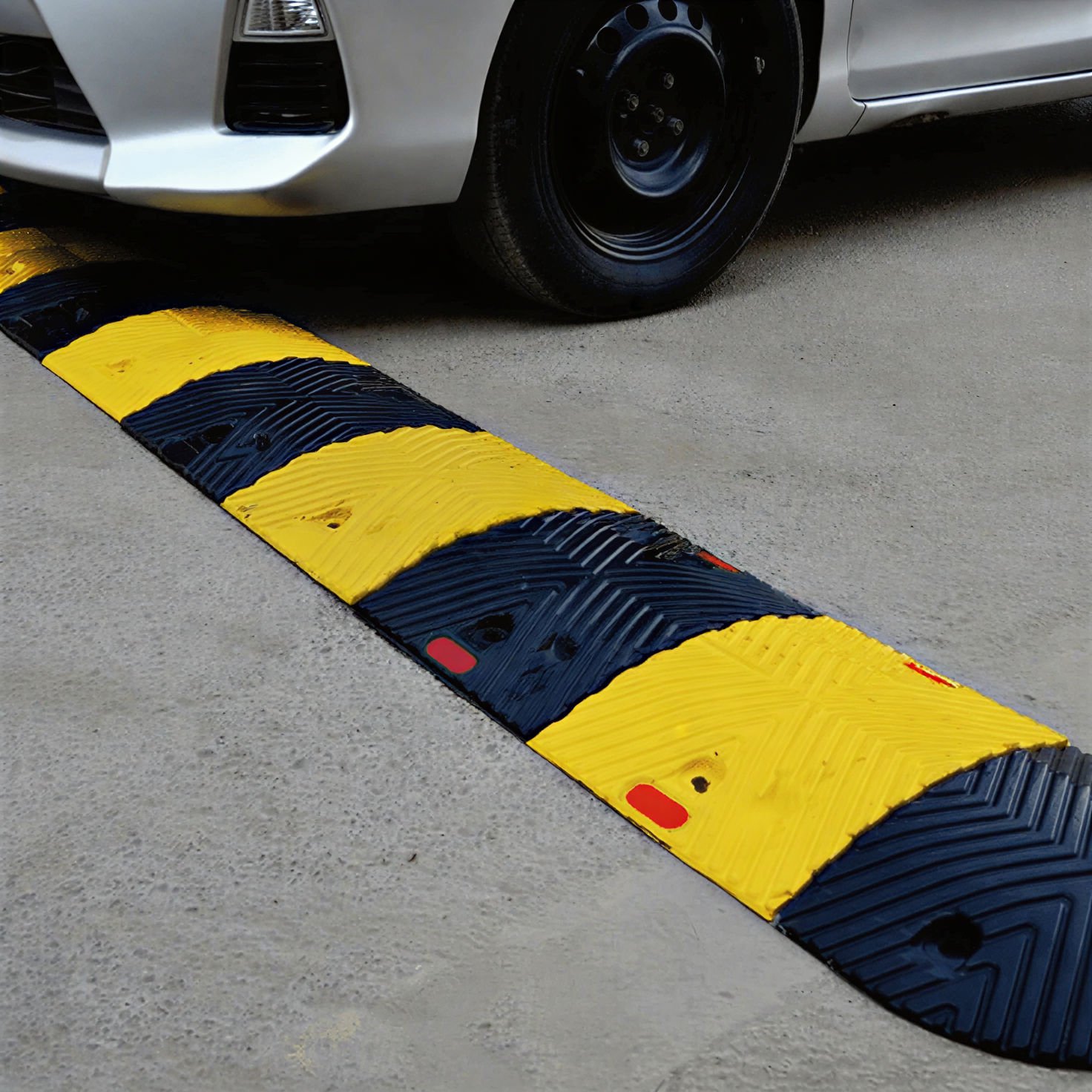 The Rubber Speed Hump L-07 is a modular road-safety device, designed to reduce vehicle speed and enhance safety in traffic-calming zones. It features a black & yellow color combination for high visibility, is moisture and temperature resistant, and is easy to install across varying road widths.