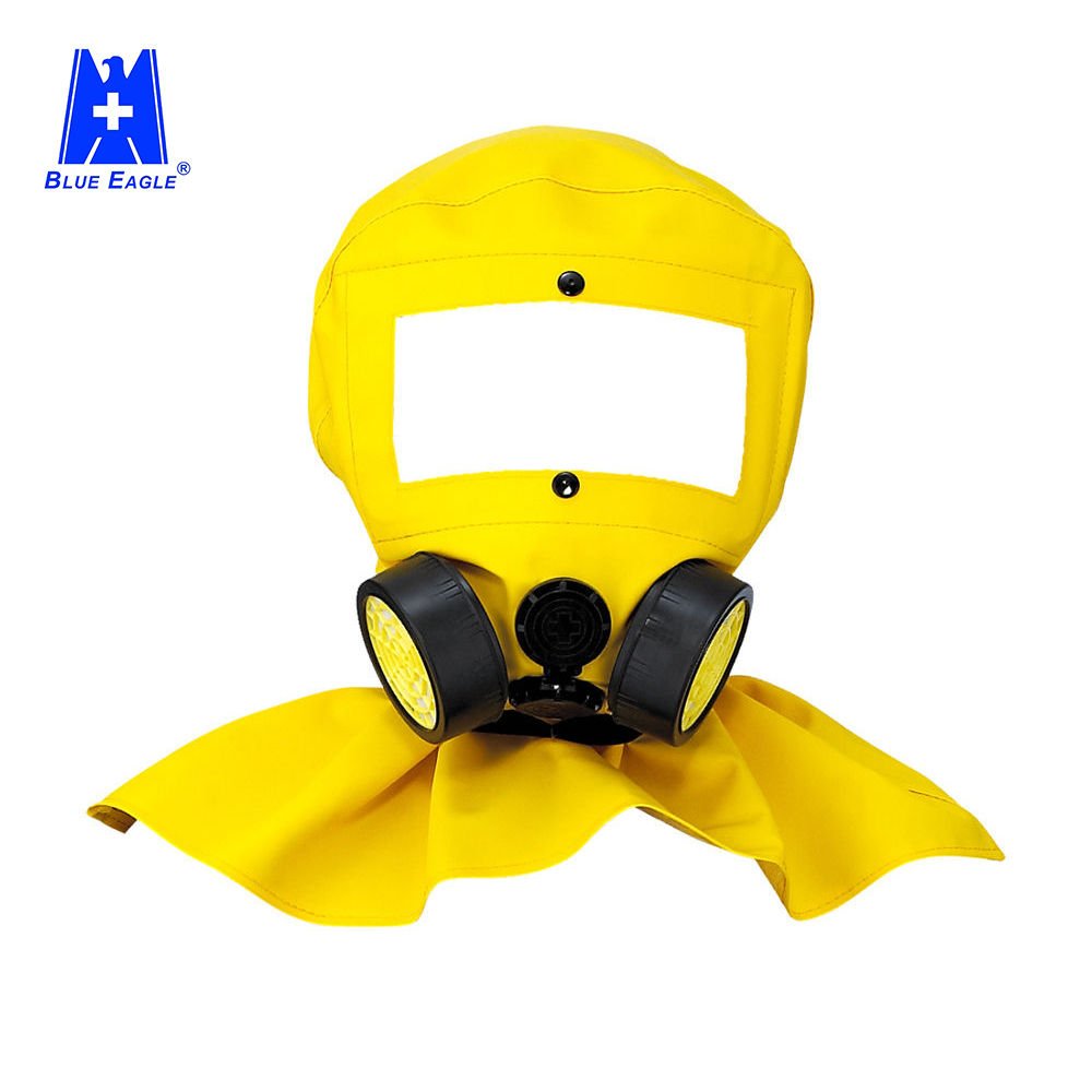 Blue Eagle NP312 Chemical Protection Safety Hood is designed to provide comprehensive protection for the head, face, eyes, and respiratory system in environments with dust, chemicals, paints, solvents, and other airborne hazards. It features a twin-filter design that reduces breathing resistance and improves comfort during extended use. The hood comes in a bright yellow finish for high visibility and is made to accept a range of compatible filter cartridges.
