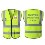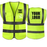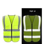 A high-visibility jacket/vest made of breathable mesh polyester, designed with multiple pockets and a front zipper for ease of use. It offers reflective strips for visibility in low-light conditions and support features suited for outdoor and industrial work. Lightweight construction makes it comfortable for extended wear, while the mesh fabric enhances airflow. Ideal for construction, traffic, surveyors, warehouse, and other safety-critical applications.