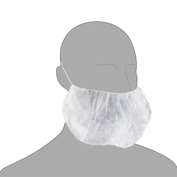 Disposable white beard mask designed to maintain high hygiene standards by preventing beard hair contamination in sensitive working environments.
