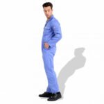 The F1022 coverall is designed for safety, durability, and comfort in industrial / mechanical work environments. Made from breathable, pre-shrunk cotton fabric, it provides flame retardant protection while maintaining ease of movement. Reflective tape adds visibility for low light conditions. The uniform is intended for mechanics, technicians, factory workers, and other roles requiring protective clothing with flame safety features.