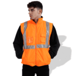 The FP1652 is a high-visibility fluorescent parka designed for roadwork, traffic control, and outdoor safety tasks. It’s engineered with a 170T polyester PVC outer shell, a 190T polyester taffeta lining, and 180 g/m² padding for moderate insulation and comfort. It complies with EN343 (rain / waterproof standard) and EN471 (visibility standard) for safe use in low-light or adverse weather. Available in bright orange (plus other color options) and sizes M to 4XL.