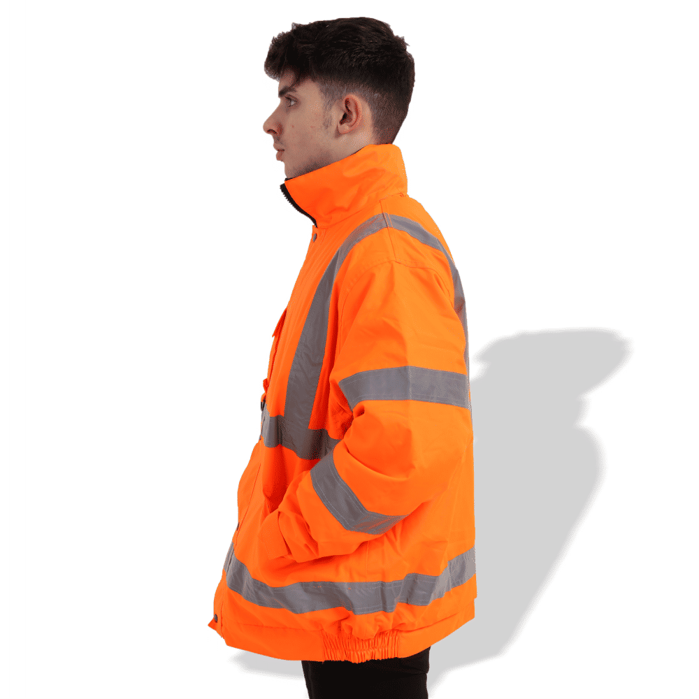 The FP1656 coverall is a full-body high-visibility waterproof suit tailored for road, traffic, and outdoor work. It uses a 170T polyester PVC outer shell to provide robust waterproof protection, paired with a 190T polyester taffeta lining for comfort. A 180 g/m² polyester padding offers moderate insulation. With full-body coverage and strategically placed reflective tape, it ensures safety in wet, dark, or low-visibility conditions. It conforms to EN343 / EN471 standards for water resistance and visibility. Available in fluorescent colors, primarily orange with gray reflective tape, and sized M to 4XL.