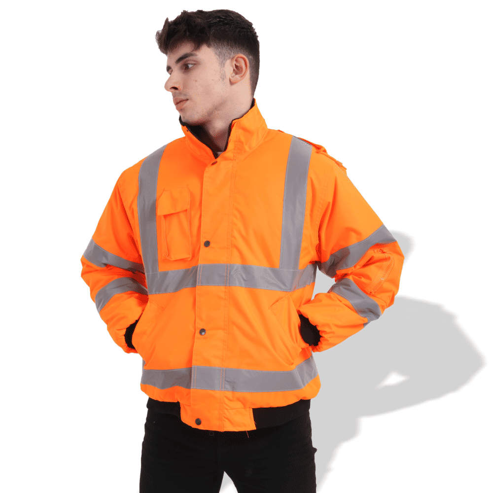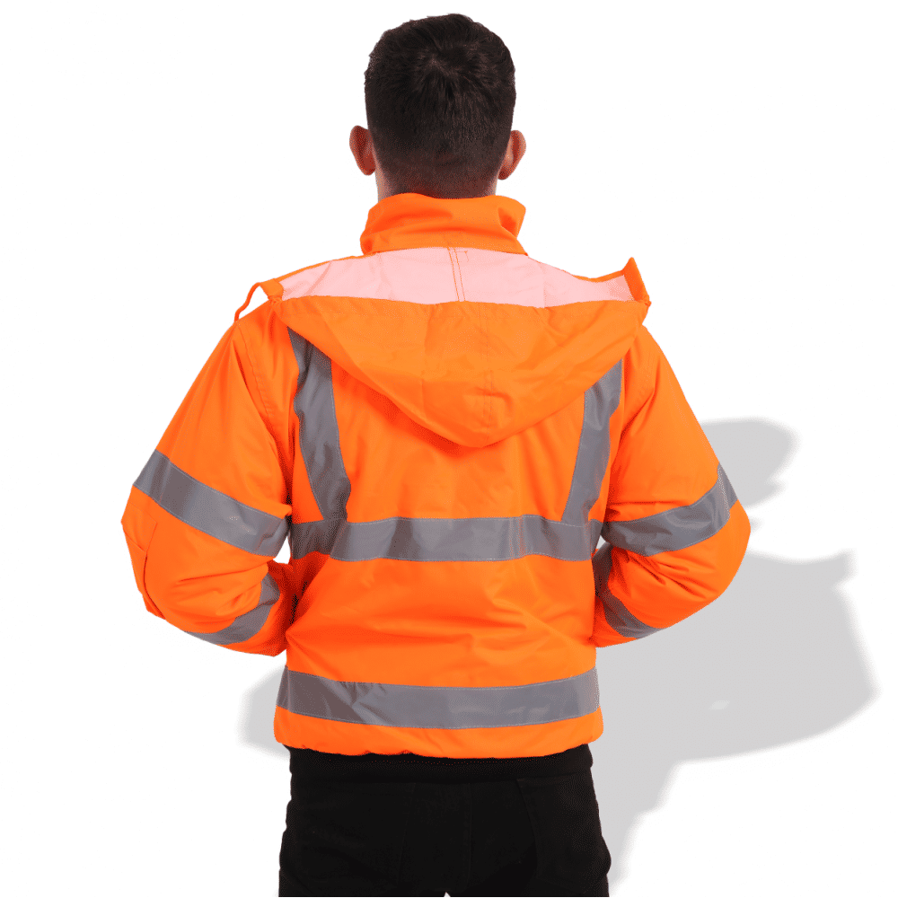 High-visibility fluorescent color with reflective tape zones per EN471 standard