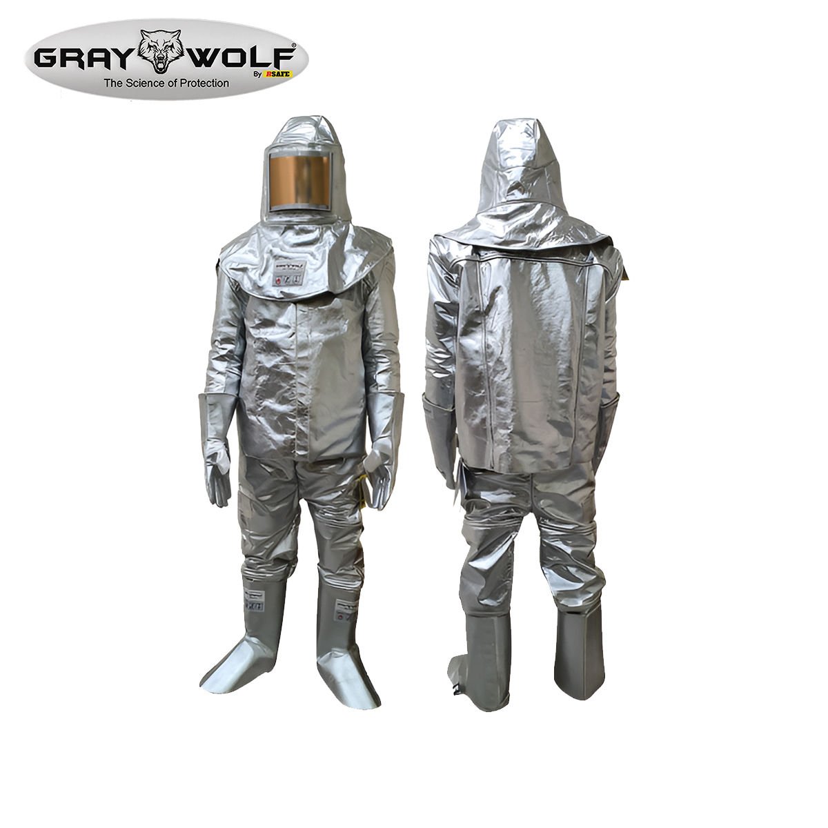 Graywolf aluminized safety suit is engineered to protect workers from extreme radiant, conductive, and convective heat as well as molten metal splashes in high‑temperature industrial environments. It is constructed with a premium aluminized coating on leather reinforced with DuPont Kevlar® fabric for excellent thermal and mechanical resistance. Ideal for use in steel mills, smelters, foundries, furnaces, and glass manufacturing operations.