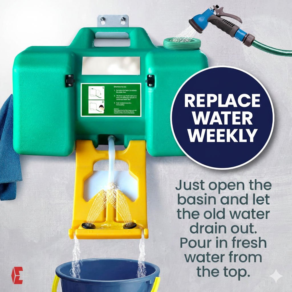 - Gravity-fed Flow: Provides a continuous flow of water for 10 minutes to flush contaminants from the eyes.