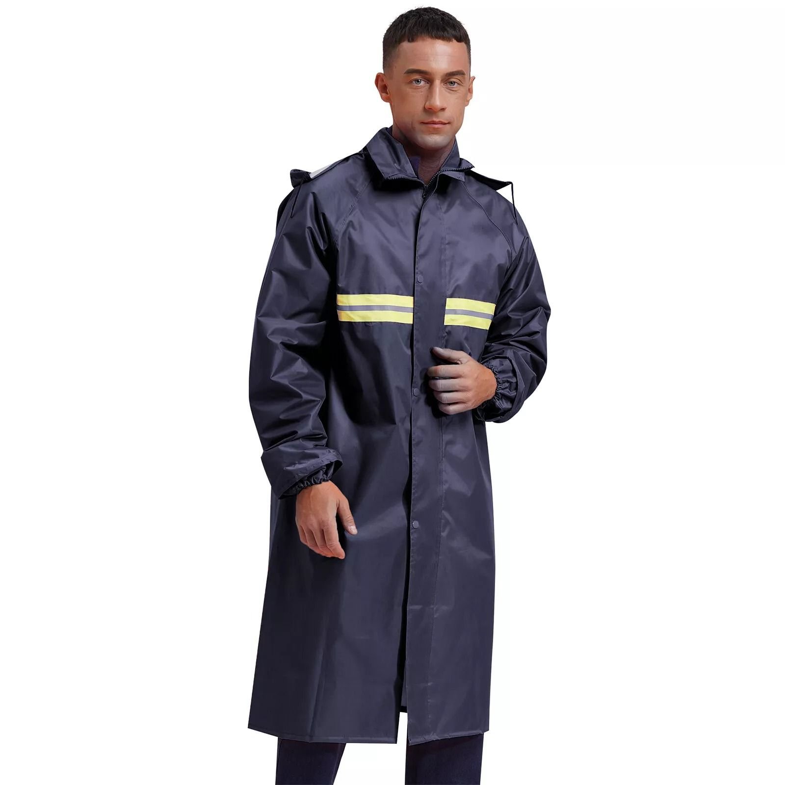 The BL435 Waterproof Rain Coat is a long PVC raincoat with hoodie designed to provide full-body protection in wet weather conditions. Its waterproof PVC construction keeps you dry, while the reflective strip enhances visibility during low-light situations or heavy rain. Ideal for commuting, outdoor work, and rainy day activities.