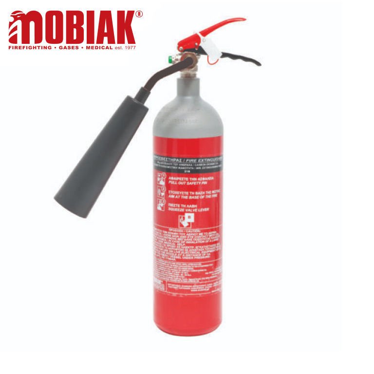 The Mobiak 2 Kg COâ‚‚ Portable Fire Extinguisher is designed for tackling Class B (flammable liquid) and electrical / energized (Class C / E) fires. COâ‚‚ is a clean extinguishing agent that leaves no residue, making it ideal for electrical equipment, control panels, and sensitive environments. This model features a side anti-frost outlet, comes with a galvanized mounting bracket, and has a height of ~ 520 mm.