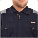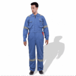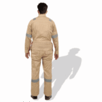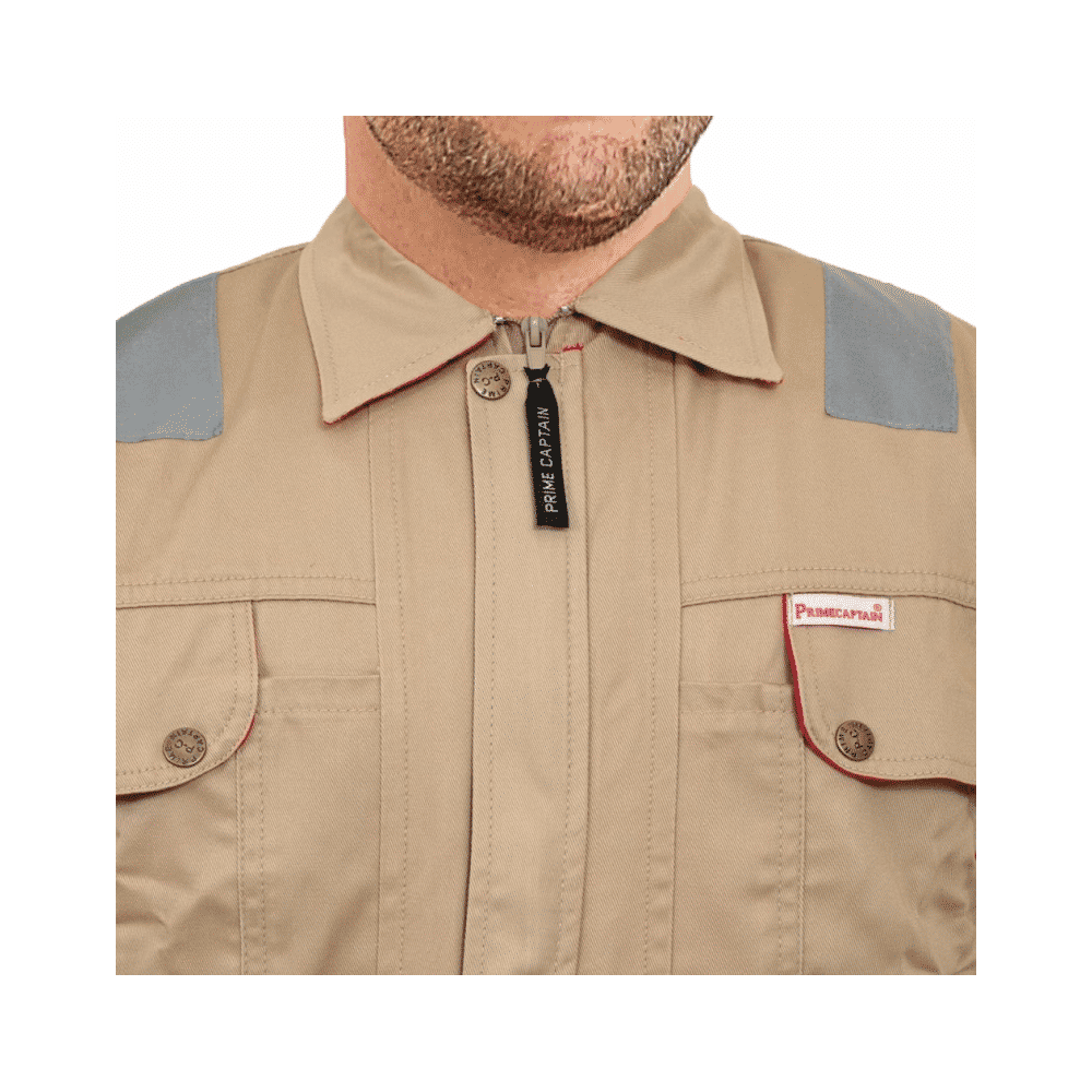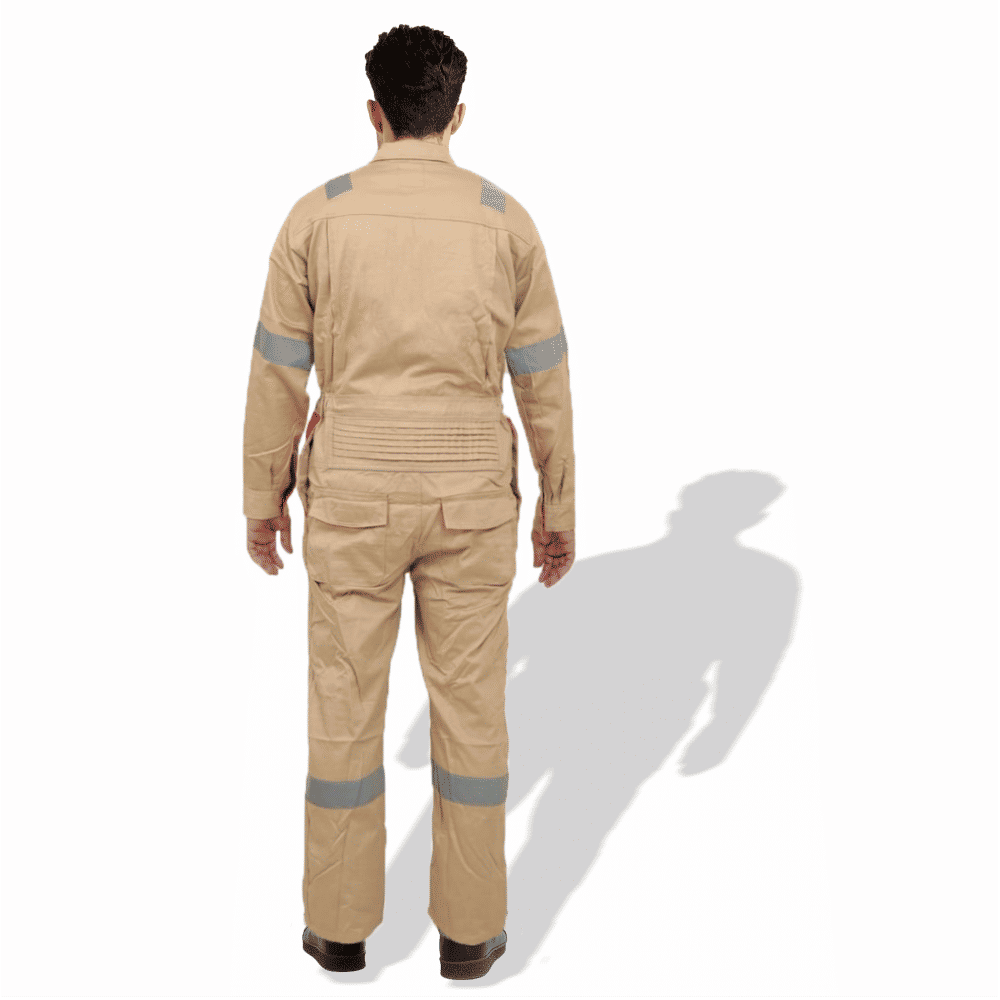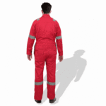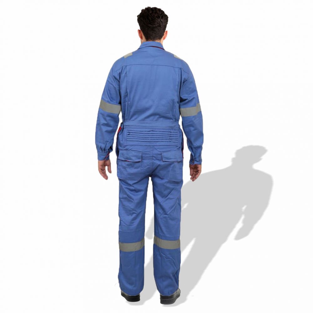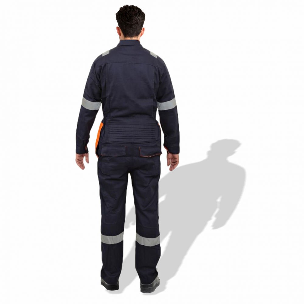 The D592 Doha Coverall is a high-visibility safety garment made from 100% pre-shrunk cotton fabric at 240 GSM, offering durability with comfort. It features 50 mm grey reflective tape on critical areas such as knees, shoulders, sleeves, and guards to enhance visibility. The front has a full-length metal zipper concealed with a placket. Designed with multiple pockets (including chest and back) and elasticized waist sides, it’s sized S to 5XL, and offered in several base colours (Red, Dark Blue, Beige, Light Blue, Orange, Grey). Complies with EN 340 standards for safety/workwear quality. Ideal for industrial, construction or field-work uses where both visibility and breathability are required.