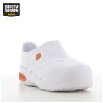 Meet the OXYSAFE shoes, the lightest safety footwear on the market. Engineered with advanced ESD, these shoes ensure a controlled discharge of electrostatic energy, protecting you and your environment. Featuring a metal-free composite toecap, they provide exceptional protection without weighing you down. Able to withstand a wash at 30°C, and both chemical and UV sterilization, these shoes are a hygienic solution for wet and dry environments alike. Enjoy enhanced grip, body posture pain relief, and the assurance of a waterproof, antibacterial material.