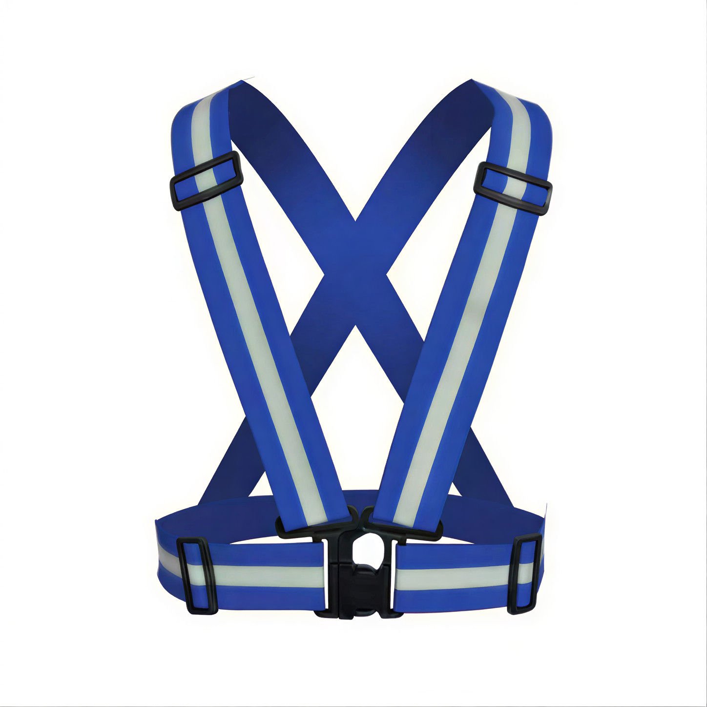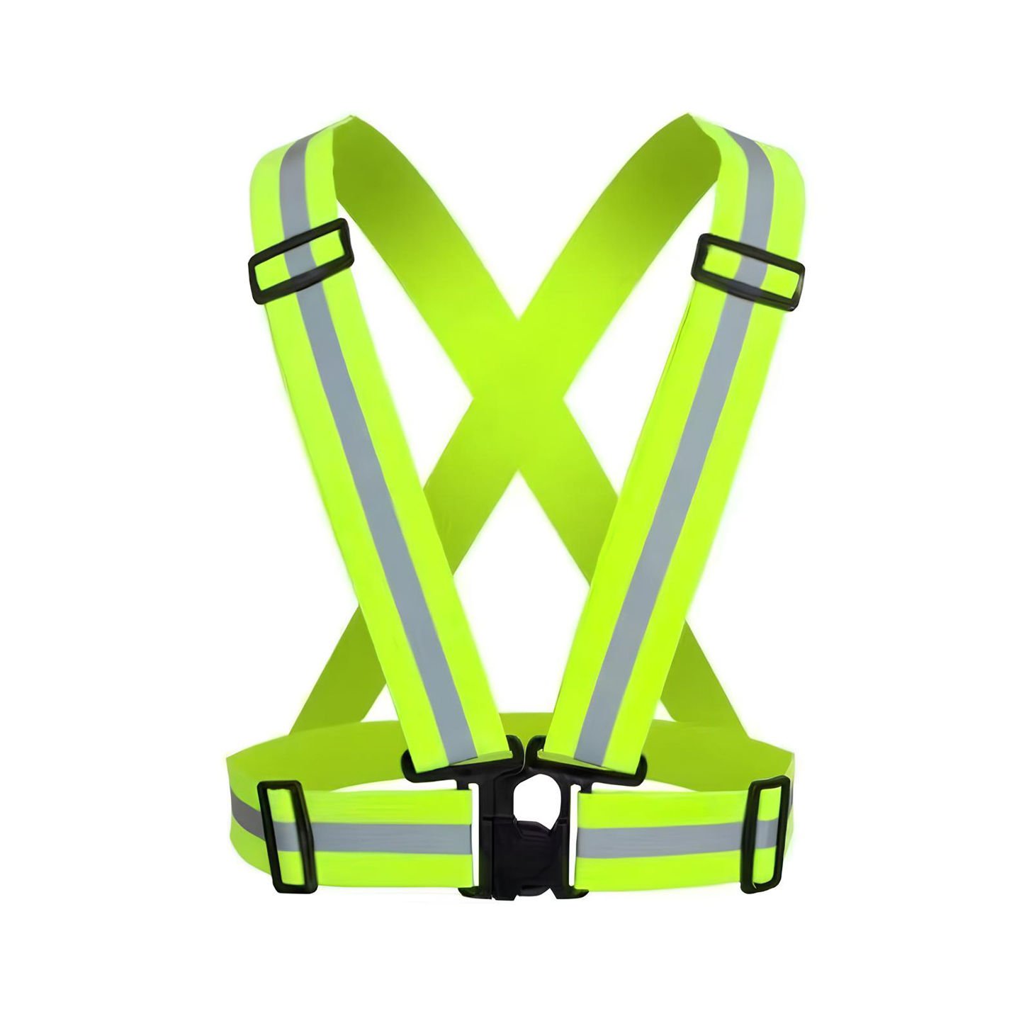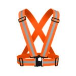 A cross-style polyester safety belt available in Green, Blue, and Orange, featuring integrated reflective stripes for high visibility. The adjustable strap design allows a comfortable fit for different body sizes, while the lightweight and streamlined construction ensures easy wear over clothing without added bulk. Suitable as a visibility accessory for traffic control, construction sites, and night-time work.